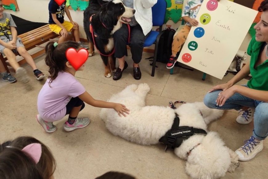 Θέλουμε να συγχαρούμε τους εκπαιδευτικούς που μας υποδέχτηκαν με ιδιαίτερη θέρμη και σεβασμό στο έργο μας, καθώς και τους μικρούς μας φίλους, που έδειξαν μεγάλη χαρά και περιέργεια για τους τετράποδους θεραπευτές μας.