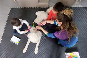 At this level, graduates can understand how to invent therapeutic interactions and apply them in different therapeutic or educational settings, as they now understand the neurobiology behind them. Handler’s practice developing the ingenuity of targeted therapeutic interactions. The dog at this stage has started training in tricks, agility and activities. Is working on his off-leash response in simulations of the working environment as preparation to be evaluated at the next level for his ability to work off-leash with individuals.